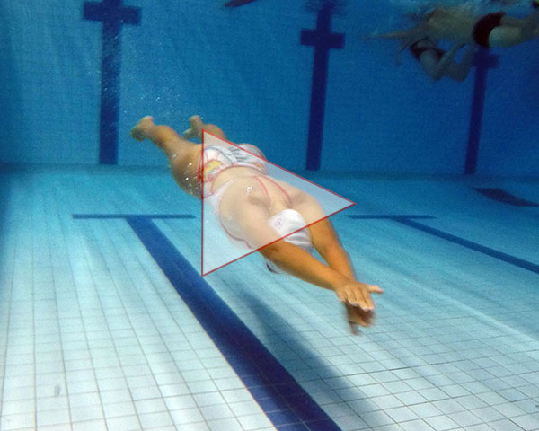 - deux parcours de 25 mètres, comprenant chacun 15 mètres en immersion complète sur un trajet défini (matérialisé au fond et sur les bords), sans que le candidat ne prenne appui;