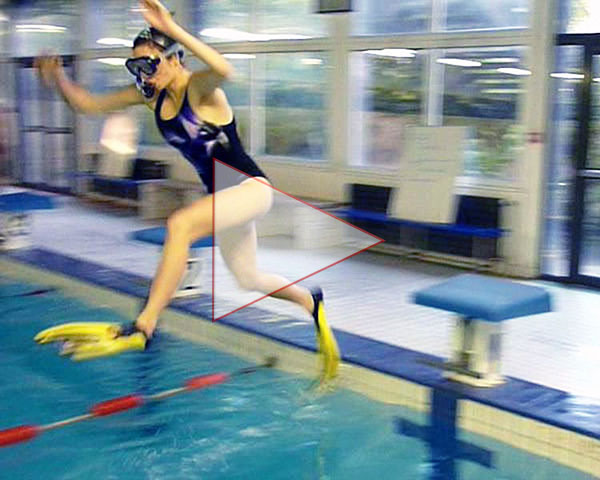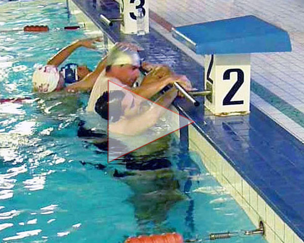 - un départ du bord du bassin ou d'un plot de départ, suivi de 25 mètres nage libre en surface;